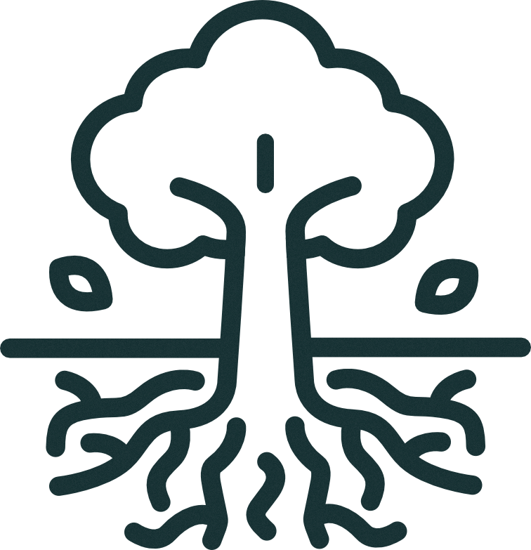 Ein Baum mit starken Wurzeln, der „sichern“ und „leben“ symbolisiert.